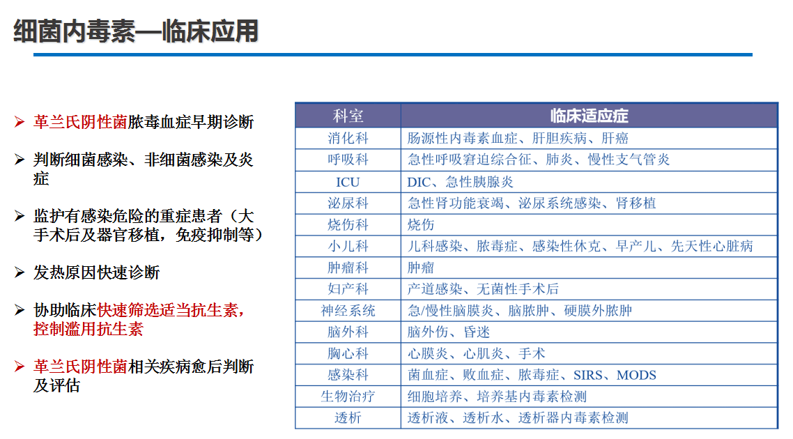 內(nèi)毒素:鑒別細菌感染(革蘭氏陰性菌),上機后1個小時內(nèi)快速檢測是否為革蘭氏陰性菌感染;